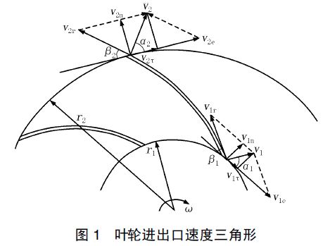 葉輪中制冷劑氣體的流動速度三角形如圖1所示。